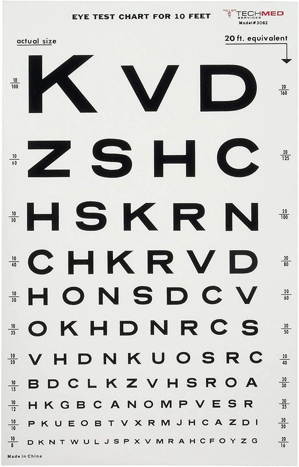 Dukal Eye Chart 20 Ft Distance Visual Acuity Testing Snellen Eye